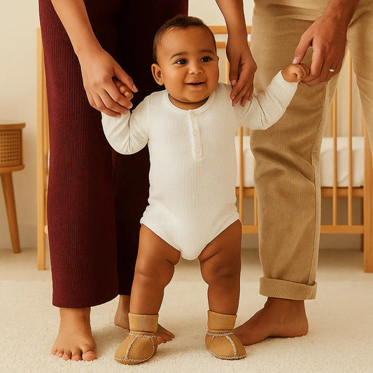 Calzini-scarpe invernali per bebè foderati con effetto pelle scamosciata