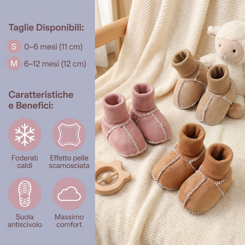 Calzini-scarpe invernali per bebè foderati con effetto pelle scamosciata