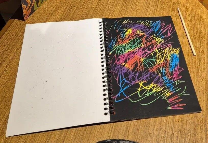 Con ogni graffio nasce una nuova opera d’arte ricca di colore e fantasia. La carta incoraggia i bambini a sperimentare liberamente e ispira gli adulti a ritrovare momenti di calma creativa nella vita quotidiana.