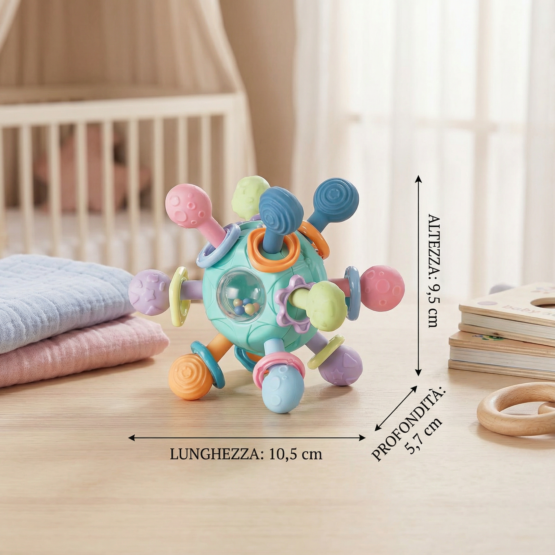 - 🖐️ Supporta in modo mirato la motricità – Favorisce il riflesso di presa, la coordinazione mano-occhio e i primi movimenti
