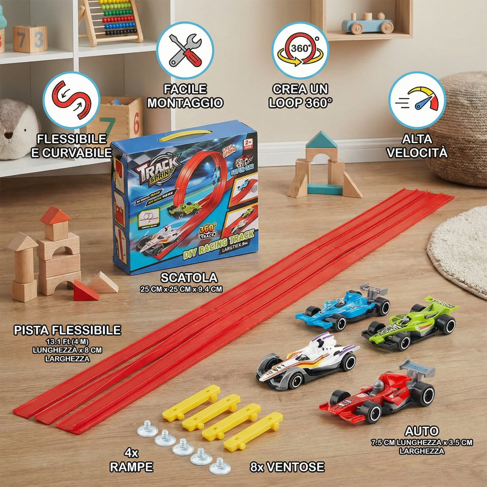- 🚗 Creatività senza limiti – I bambini possono creare le proprie piste personalizzate e reinventarle ogni volta.