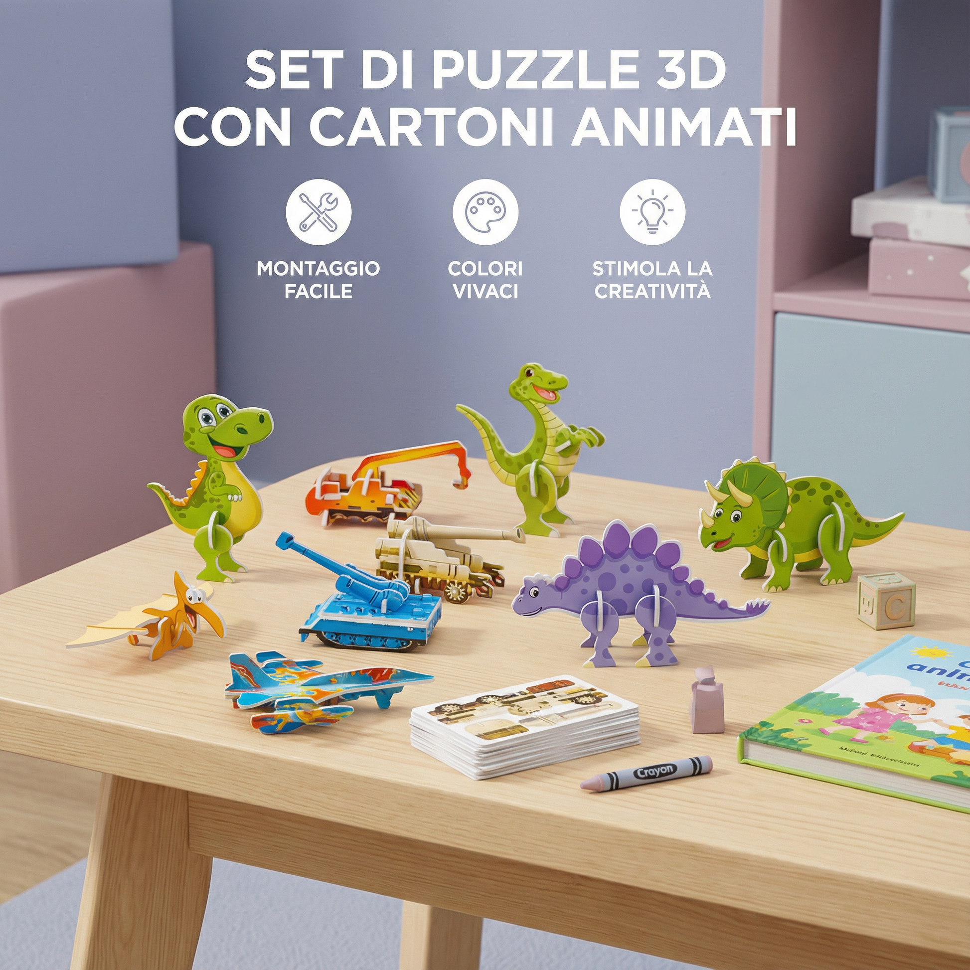 Imparare giocando, scoprire con creatività – Il set di puzzle 3D con cartoni animati per bambini!