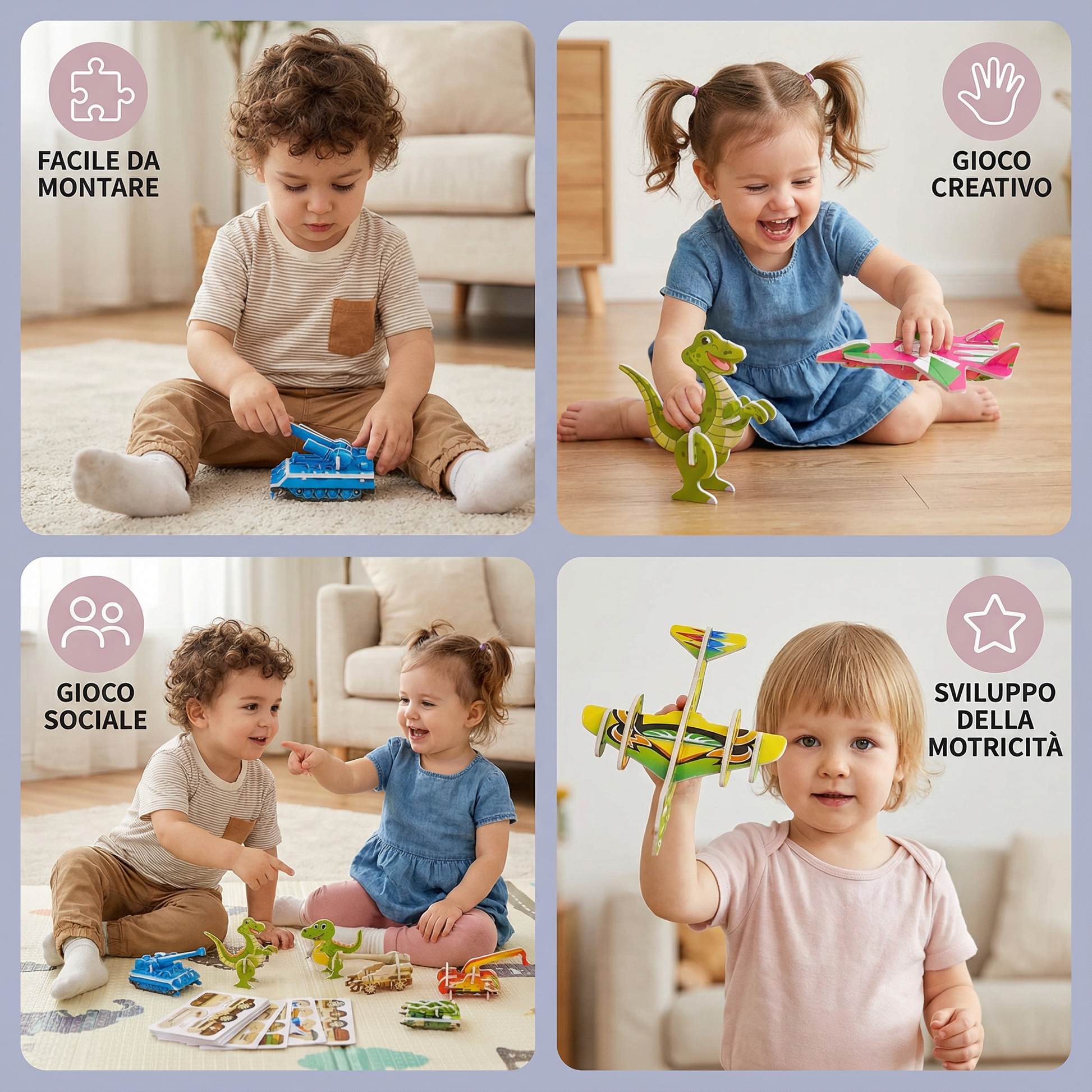 Con ogni puzzle completato nasce qualcosa di unico: una piccola opera d’arte 3D da mostrare con orgoglio. Il gioco non solo stimola la fantasia, ma rafforza anche l’autostima e il piacere di creare.